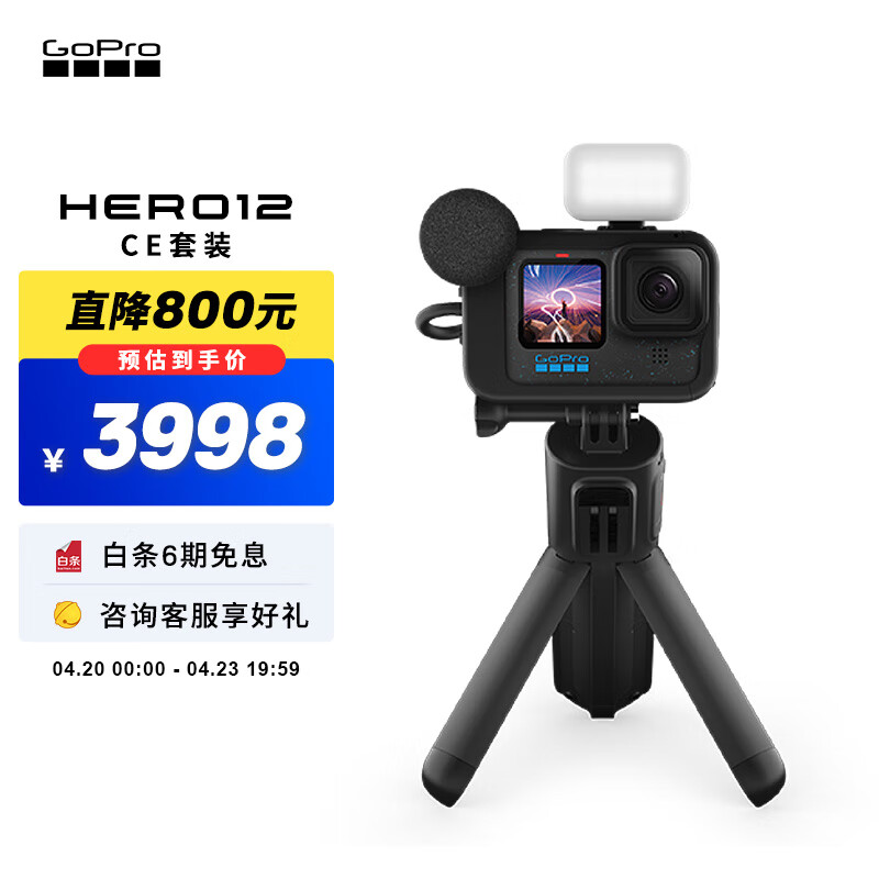 GoPro HERO12 Creator Edition运动相机 户外摩托骑行记录 防水防抖相机 Vlog数码潜水摄像机续航套装价格:3998.00元!