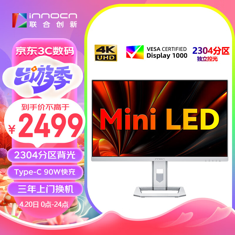联合创新(INNOCN)27英寸4K MiniLED 2304分区调光 自动感光Type-C 90W旋转升降HDR1000电脑显示器27M2U pro价格:3499.00元!