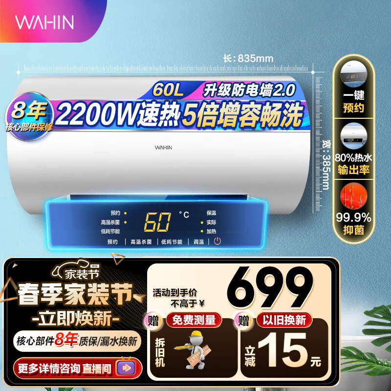 华凌储水式电热水器大功率速热2200W智能家用 经济升级防电墙快速热水器YJ2上门安装 60L 2200W 3-4人使用YJ2 性价比优选价格:849.00元!