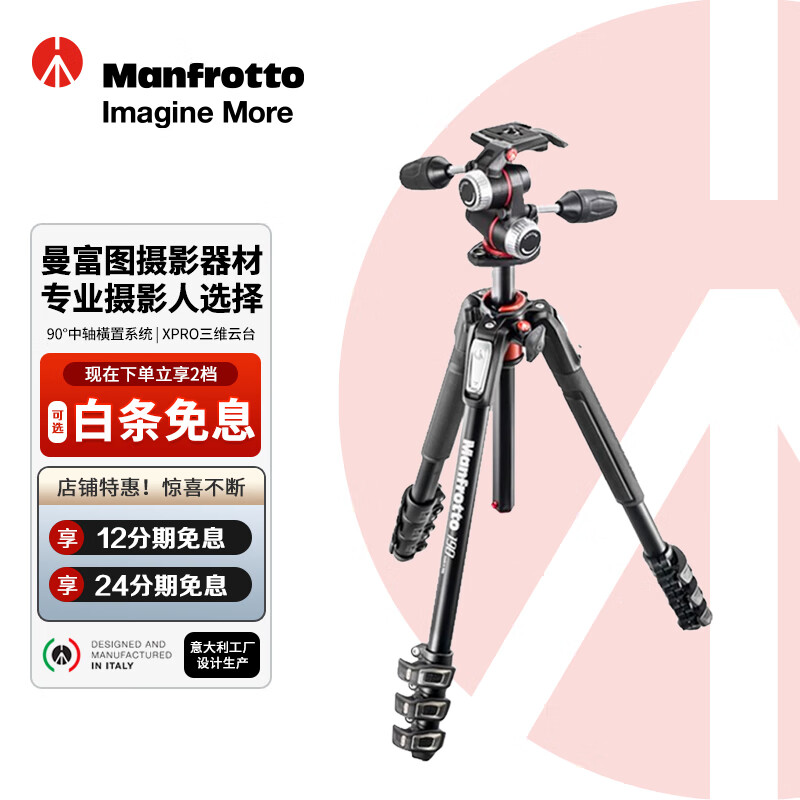 曼富图(Manfrotto)MK190XPRO4-3W 190系列铝合金四节三脚架三维云台套装中轴可横置稳定微单单反 承重12kg价格:2660.00元!