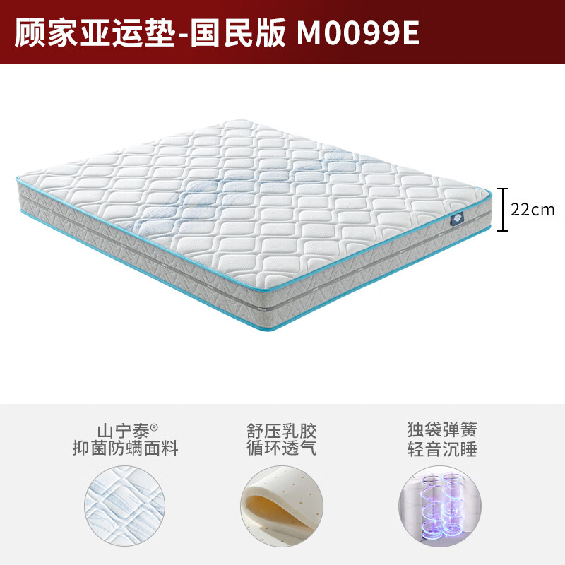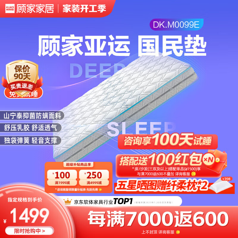 顾家家居(KUKA)乳胶床垫独立筒弹簧抑菌防螨亚运垫 M0099E 1.5X2.0m价格:1499.00元!