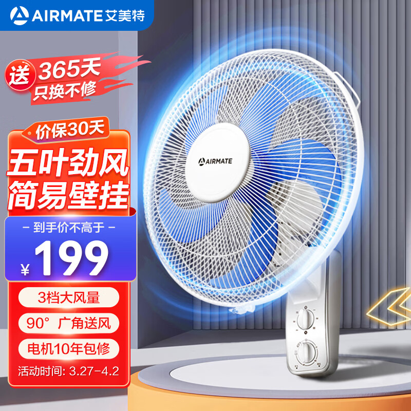 艾美特(Airmate)壁扇壁挂电风扇 家用商用挂壁式挂墙式五叶3档大风量宿舍餐厅墙壁风扇 FW4035T2价格:179.00元!