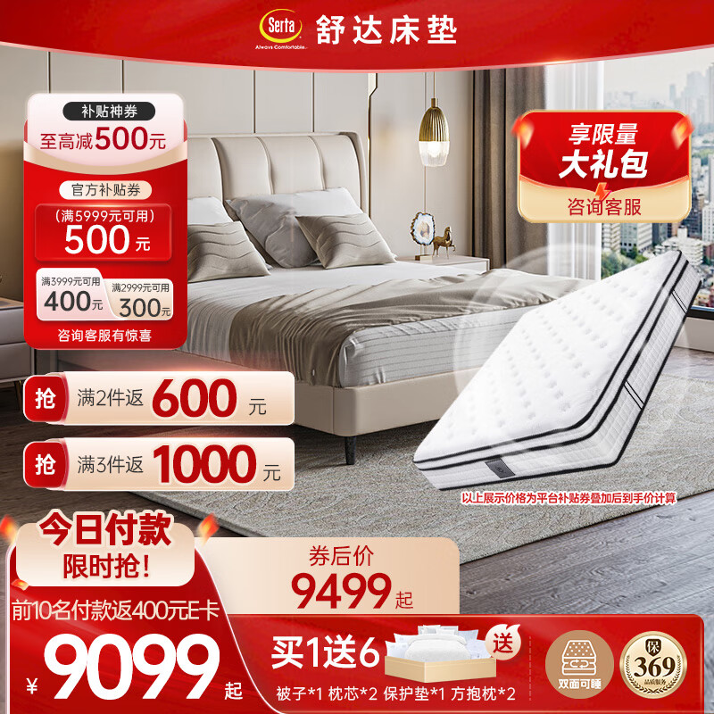 舒达(serta)致眠+星享套床(米白色)床垫1.8米*2米价格:9999.00元!