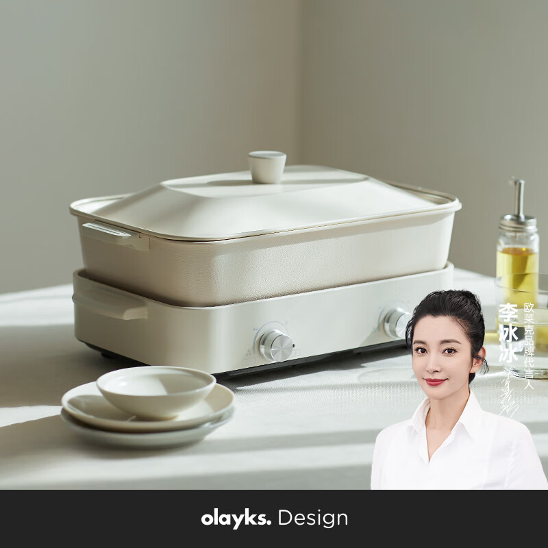 olayks出口原款 多功能料理锅烤涮煎煮一体锅家用3.5L电火锅电分体式烤盘烧烤鱼烤肉多用途锅价格:399.00元!