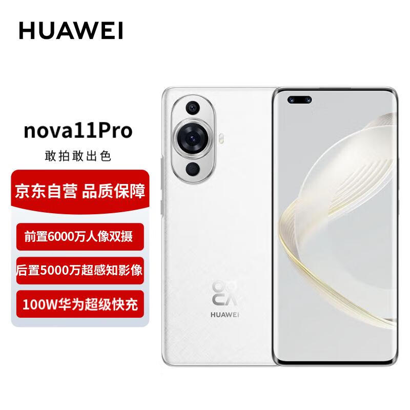 华为nova11Pro手机 超可靠昆仑玻璃 前置6000万人像双摄 256GB 雪域白 华为鸿蒙智能手机价格:3399.00元!