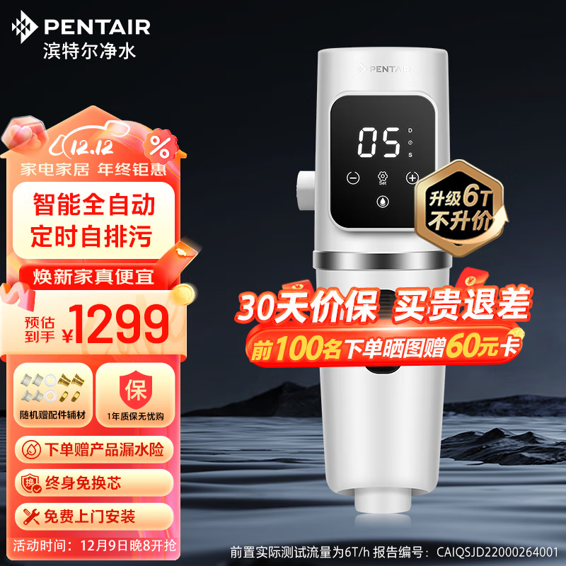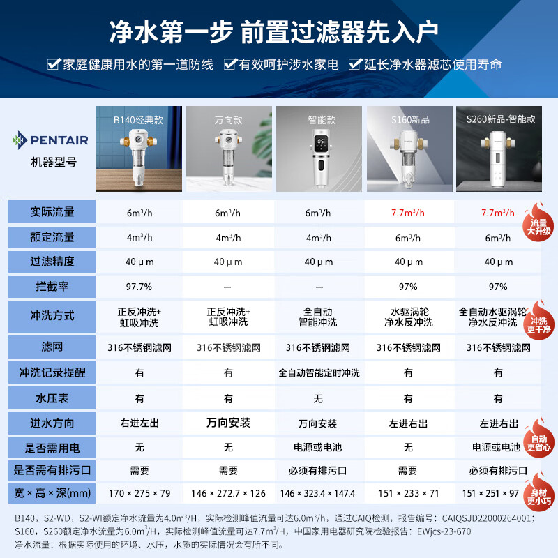 滨特尔(pentair) 前置过滤器大通量家用全屋自来水管道过滤器虹吸正反冲洗家用净水器 【智能万向】S2-WI全自动前置过滤器价格:1299.00元!