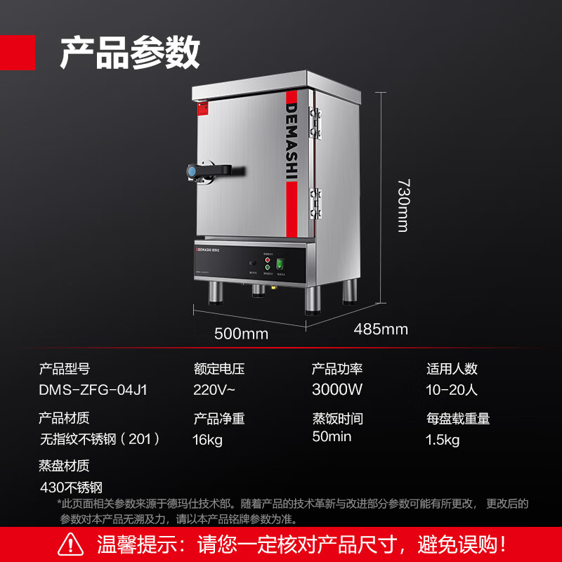德玛仕商用蒸饭柜商用蒸箱蒸饭车蒸炉蒸饭机食堂蒸箱小型蒸饭器食堂酒店餐厅蒸菜工厂单位学校饭堂防干烧 小4盘220V|独立电源|10-20人用价格:1028.00元!