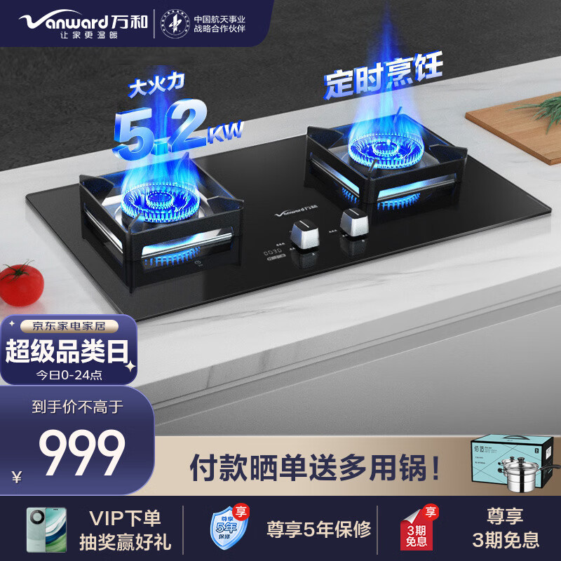 万和 Vanward 定时燃气灶5.2kW大火力嵌入式台式两用具家用双灶 钢化玻璃 全进风JZT-T9L96(天然气)价格:999.00元!