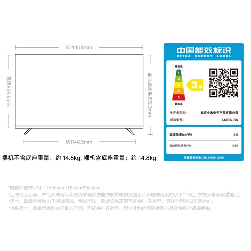小米L65RA-RA配置参数: