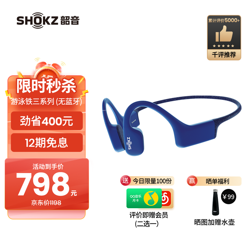 韶音(SHOKZ)OpenSwim骨传导开放式MP3播放器 不入耳式运动游泳跑步专用 IP68防水S700 星空蓝价格:798.00元!