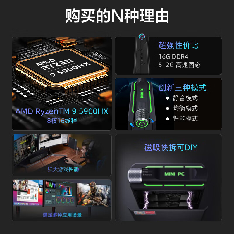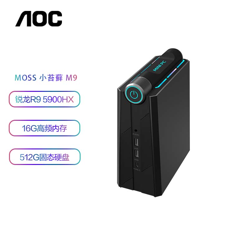 AOC MOSS小苔藓M9 Mini迷你主机商用办公家用台式电脑(AMD锐龙R9 5900HX 16G 512G 全功能-C WIFI)价格:2599.00元!