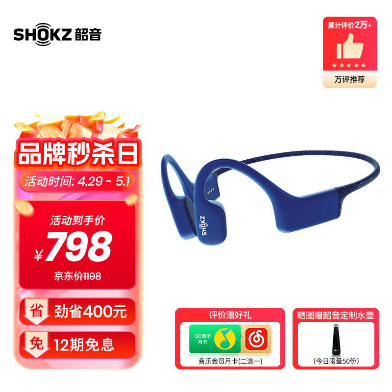 韶音(SHOKZ)OpenSwim 骨传导运动MP3播放器游泳跑步骑行自带内存S700 星空蓝价格:798.00元!
