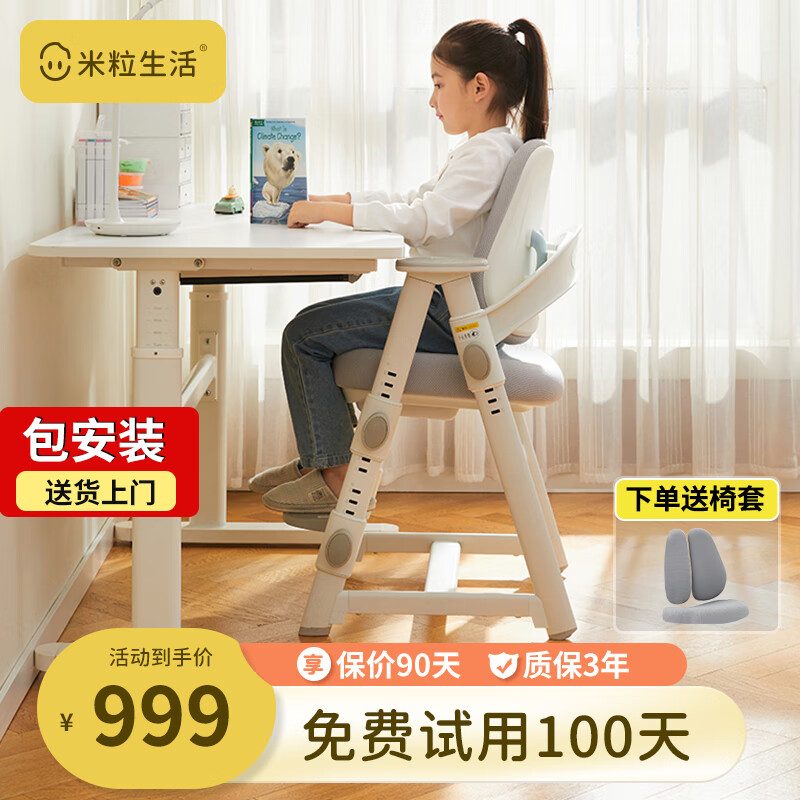 米粒生活F3儿童学习椅子可升降小学生写字椅家用书房座椅端正坐姿132F灰价格:1299.00元!