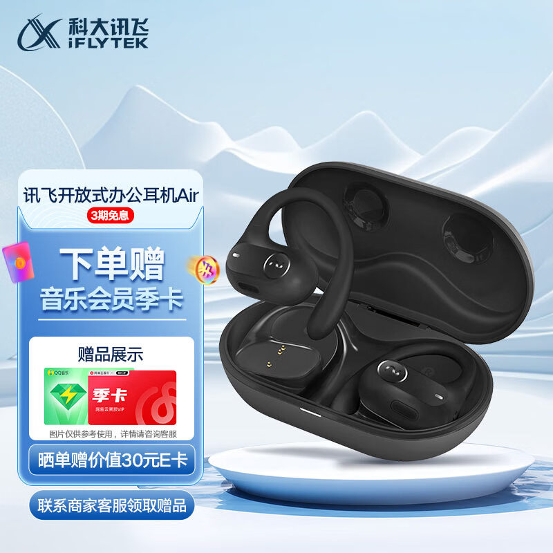 科大讯飞开放式办公耳机 Air 黑 无线蓝牙耳机 骨传导升级气传导运动录音耳机 同传听译 适用苹果华为价格:959.00元!