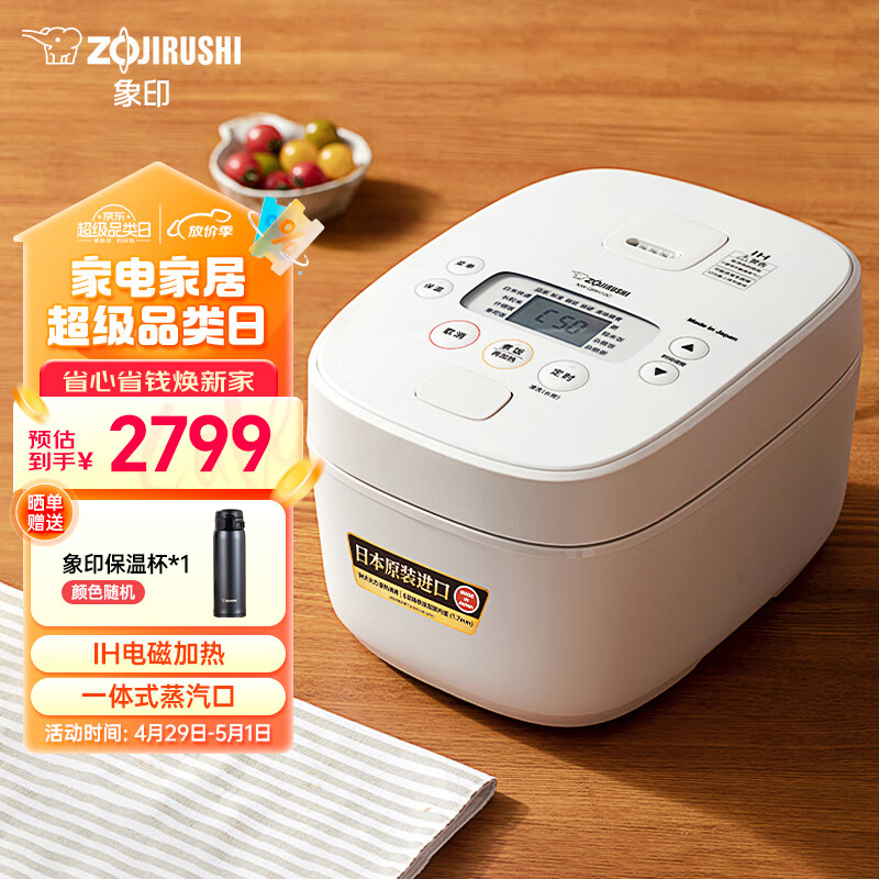 象印(ZO JIRUSHI)日本进口 家用IH电饭煲5升大容量 自清洗蒸汽口智能双预约电饭锅NW-QRH18C价格:3349.00元!