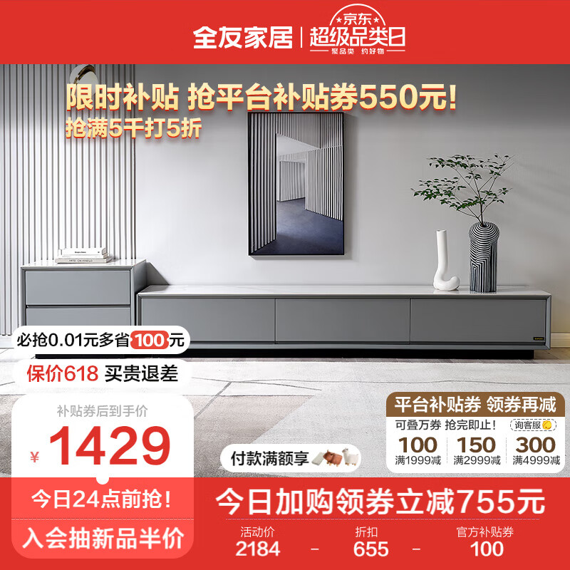 全友家居 电视柜大小户型岩板收纳附柜现代客厅家具DW1055价格:2184.29元!