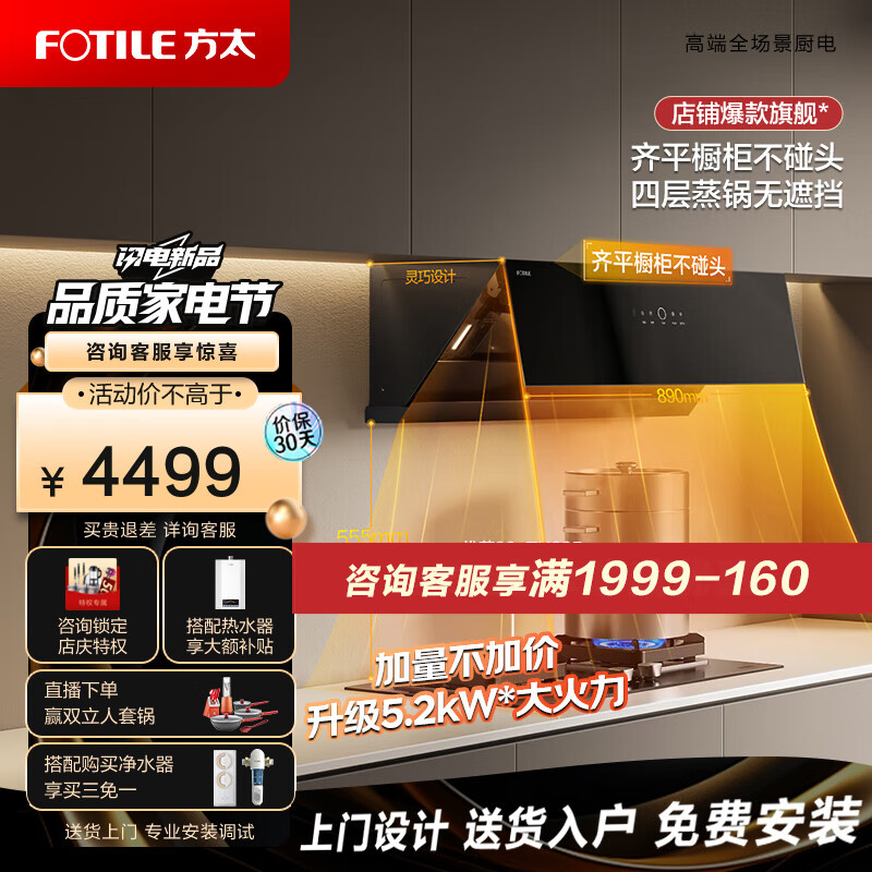方太(FOTILE)油烟机灶具套装 侧吸式 抽吸油烟机燃气灶家用TA烟灶套装 方太官方 JCD10TB+02-TH29B 【行业热卖】JCD10TB+02-TH29B 液化气(灶具型号TH29B)价格:4499.00元!