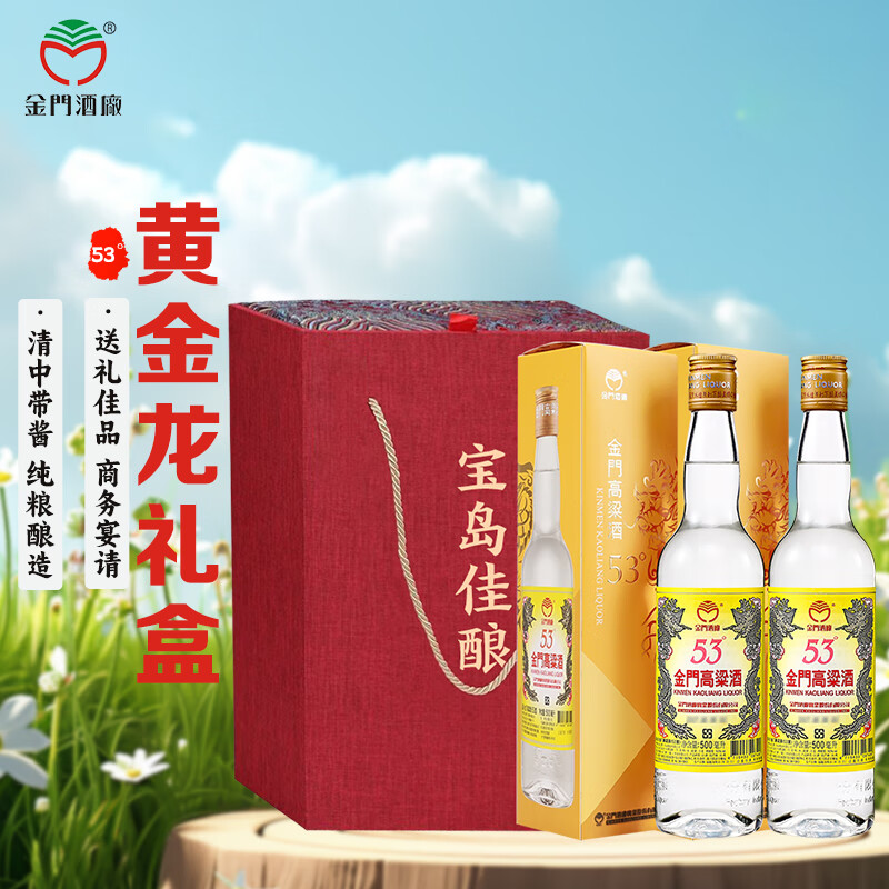 金门高粱 黄金龙 清香型 白酒 53度 500ml*2瓶 礼盒装 【宴请送礼】价格:399.00元!