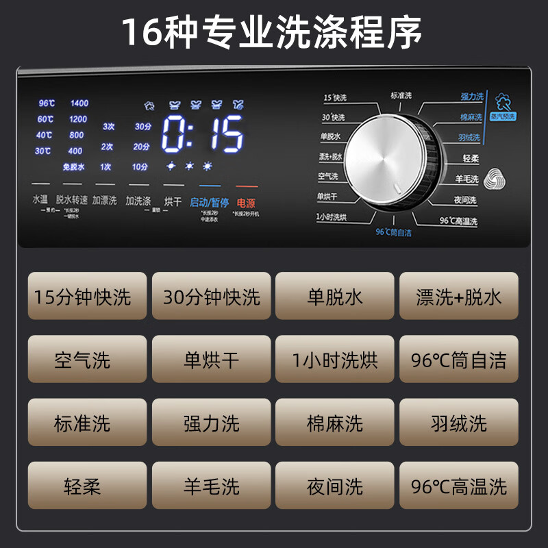 特色功能:儿童锁,防缠绕,烘干/风干,筒自洁,脱水功能,夜间洗,预约功能,除菌功能