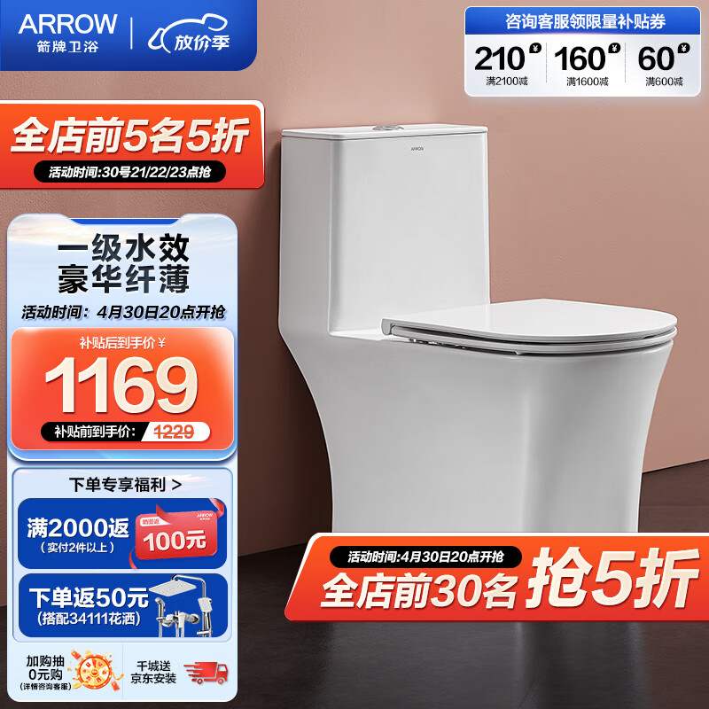箭牌(ARROW)马桶家用卫浴虹吸抽水坐便器普通坐厕 全施釉 豪华纤薄AE1182M-SD价格:1299.00元!