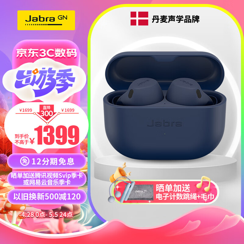 捷波朗(Jabra)Elite8 主动降噪真无线耳机 E8A半开放蓝牙耳机运动通话 IP68防水 蓝牙5.3 新一代Active 海军蓝价格:1699.00元!