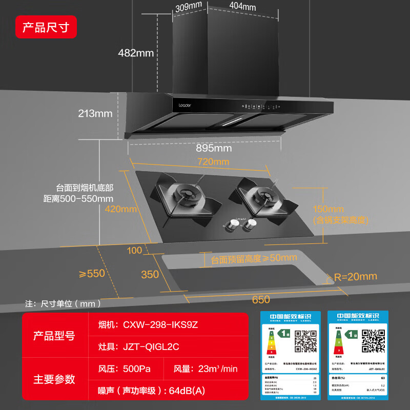 Leader海尔智家出品 抽油烟机 欧式烟机燃气灶消毒柜 23m3/min烟灶消三件套IKS9Z+L2C天+12LCS1价格:2899.00元!