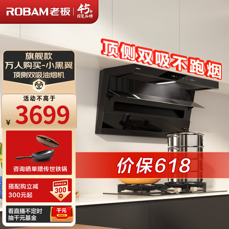 老板(Robam)【小黑翼】油烟机D1家用超薄顶侧双吸抽油烟机大吸力25风量7字型烟机排烟机燃气灶油烟机灶具 27A13-D1单烟机 小黑翼价格:3699.00元!