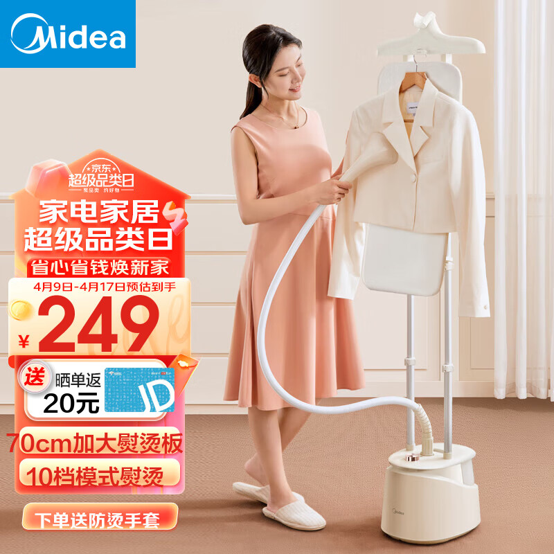 美的(Midea)【升级熨烫大面板】挂烫机家用 熨斗 蒸汽挂烫机 双杆手持熨烫机电熨斗 【升级10档熨烫模式】双杆YGD25A1价格:499.00元!