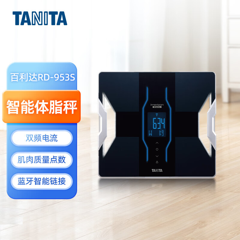 百利达(TANITA)RD-953S 专业智能电子秤体脂秤 减肥专用精准 健康检测家用 双频四电极 日本品牌 黑色价格:999.00元!
