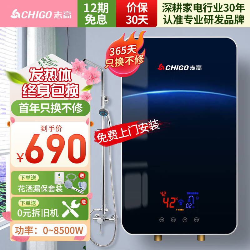 志高(CHIGO)即热式电热水器 8500W变频恒温小型省电家用小厨宝淋浴洗澡水龙头免储水多功率可调防漏电KBR-H5价格:890.00元!