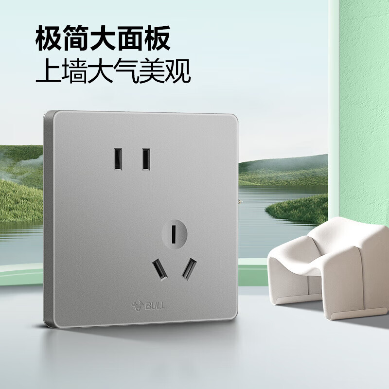 公牛(BULL)开关插座 G12系列10A斜五孔插座86型面板G12Z223AS 灰色 十只装价格:245.00元!