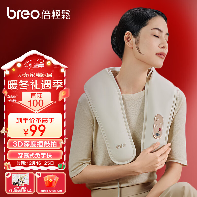 倍轻松(breo)颈椎按摩器Neck N1肩颈按摩披肩 按摩仪腰部背部斜方肌按摩3D捶打肩部 圣诞元旦礼物 易烊千玺代言价格:99.00元!
