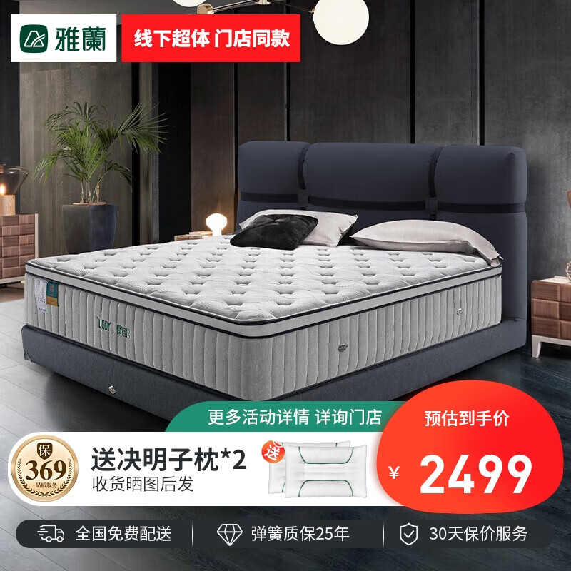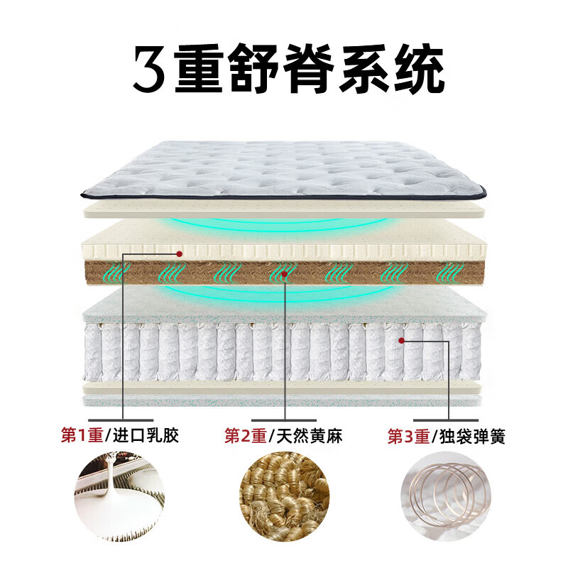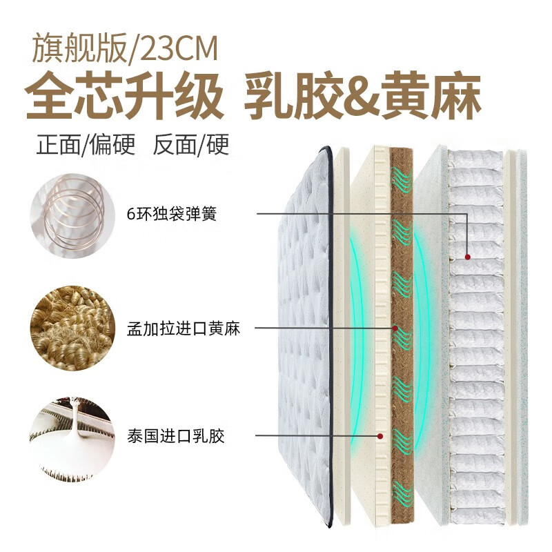 雅兰乳胶床垫偏硬家用黄麻舒脊独立弹簧棕垫 有度旗舰版 1.8*2米 超体价格:3499.00元!