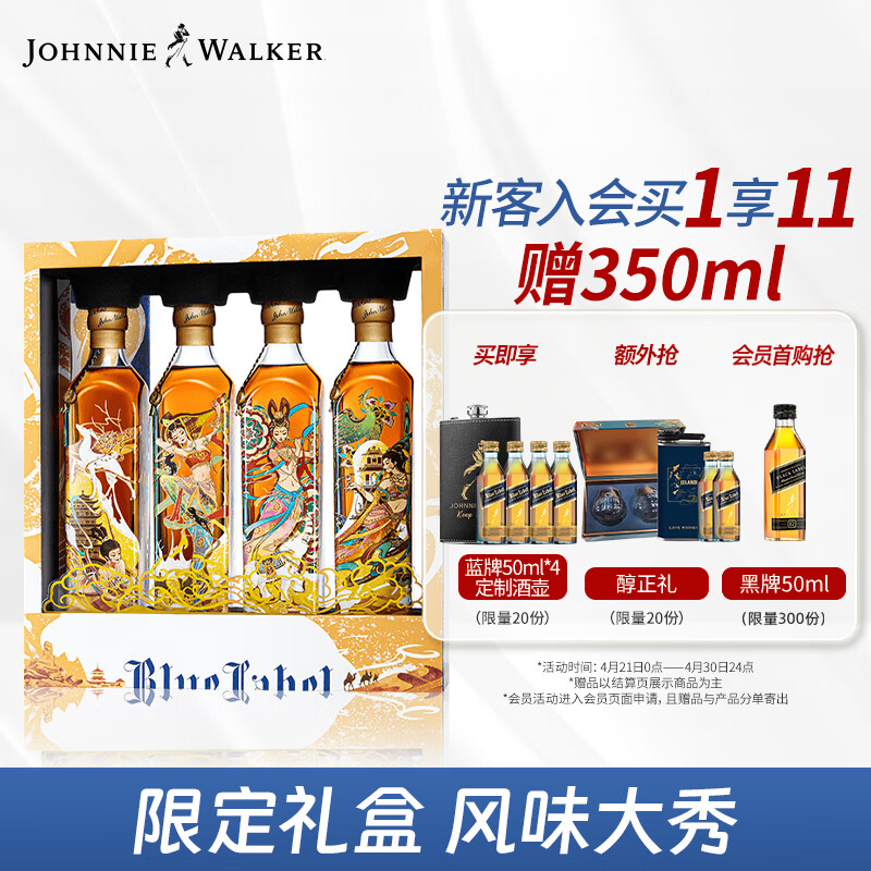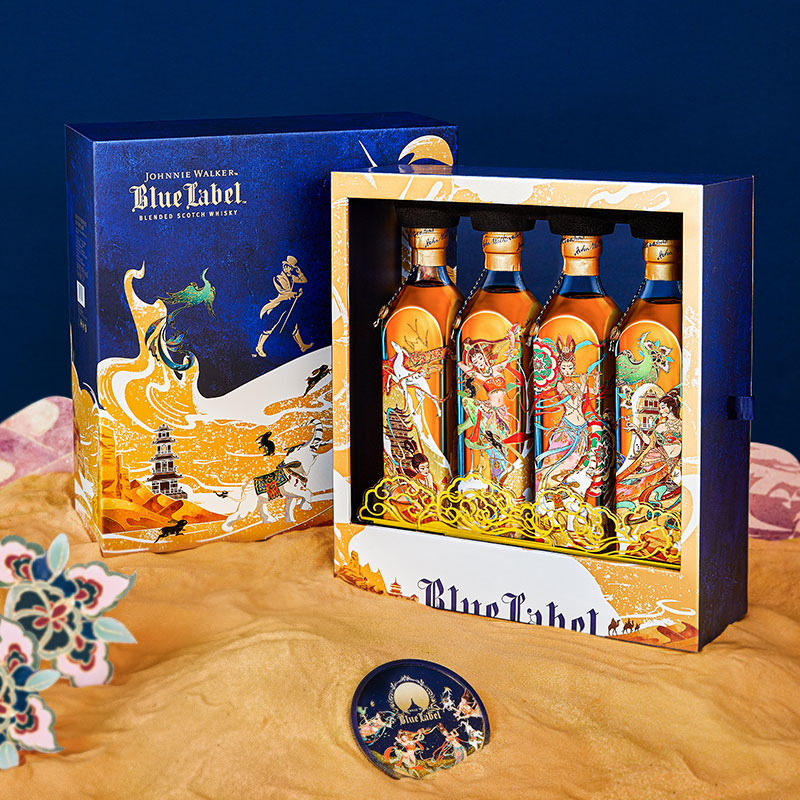 尊尼获加(JOHNNIE WALKER)蓝方蓝牌 定制礼盒 敦煌飞天系列 调和威士忌500ml*4价格:3276.00元!