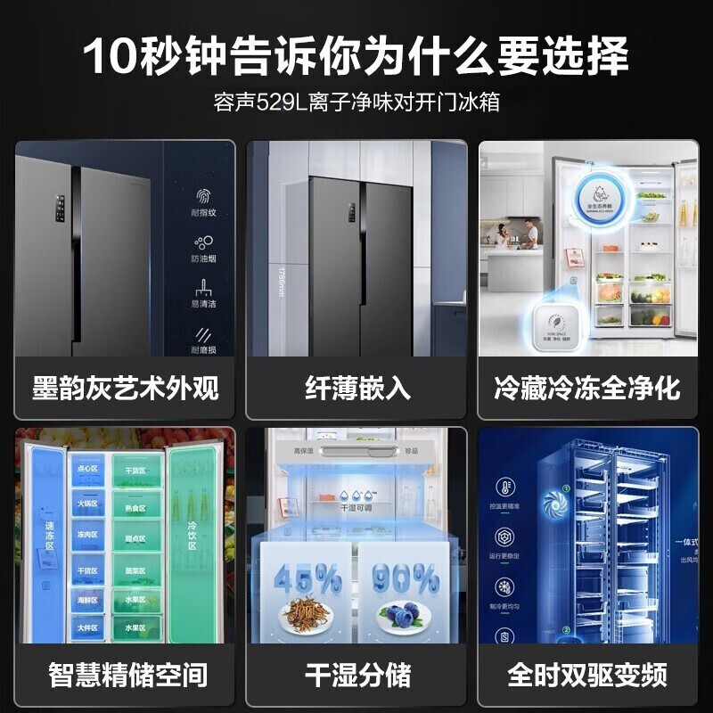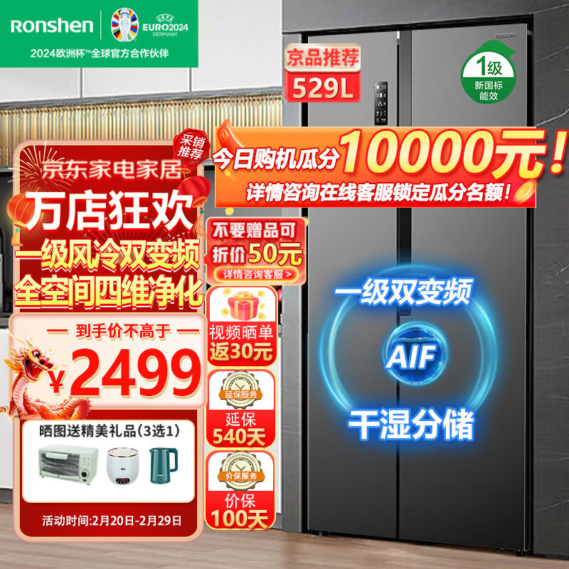 容声(Ronshen)【离子净味系列】529升对开门冰箱一级风冷无霜双变频电冰箱纤薄净味双开门干湿分储价格:2499.00元!