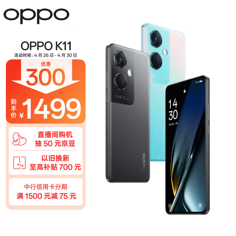 OPPO K11 索尼旗舰主摄 100W闪充 骁龙芯 12GB+256GB 月影灰 老人安卓游戏电竞智能学生直屏拍照5G手机价格:1799.00元!