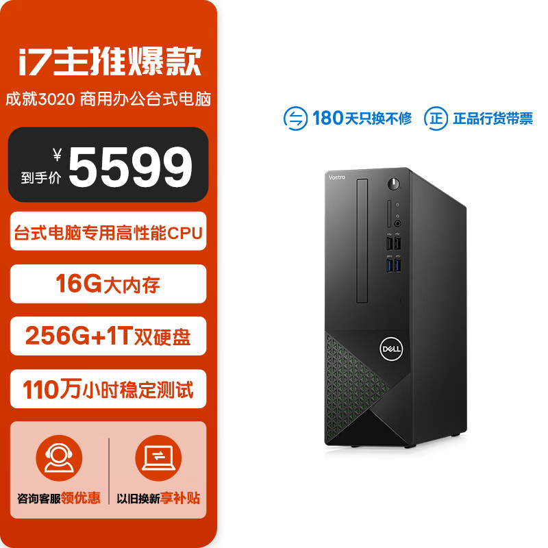 戴尔(Dell)成就3020 台式电脑主机(酷睿13代i7-13700 16G 256GSSD+1TB)单主机 高性能CPU价格:5599.00元!