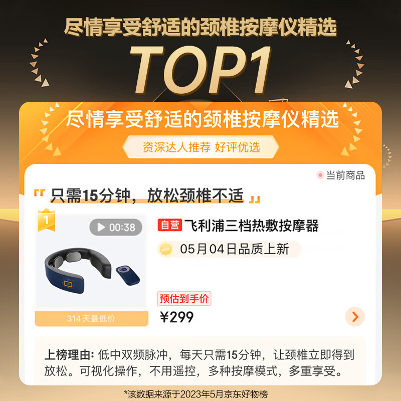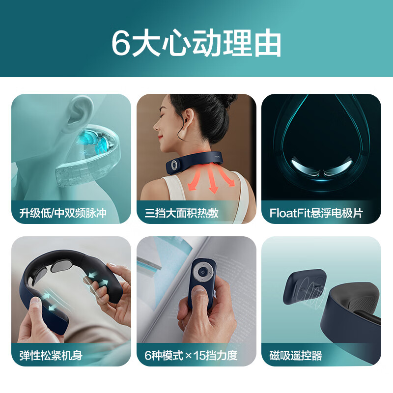 飞利浦(PHILIPS)颈椎按摩器颈部按摩仪肩部按摩器肩颈脖子按摩仪双频脉冲热敷升级遥控送父母亲男女朋友生日礼物 【6大模式·15档力度】双频脉冲按摩价格:299.00元!