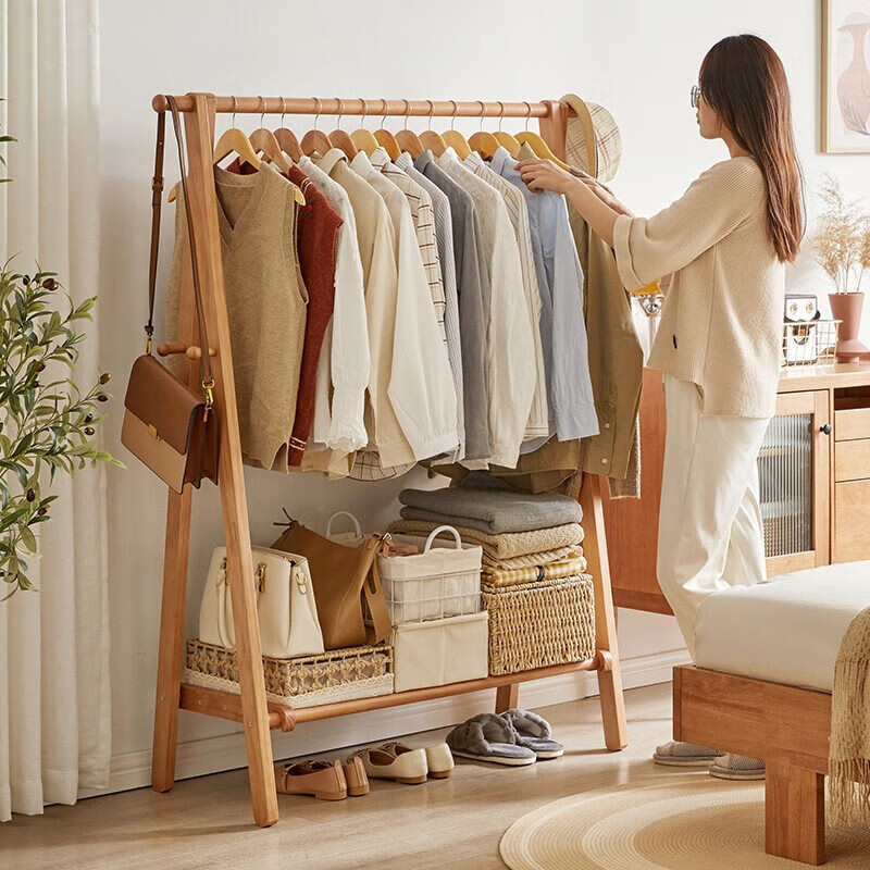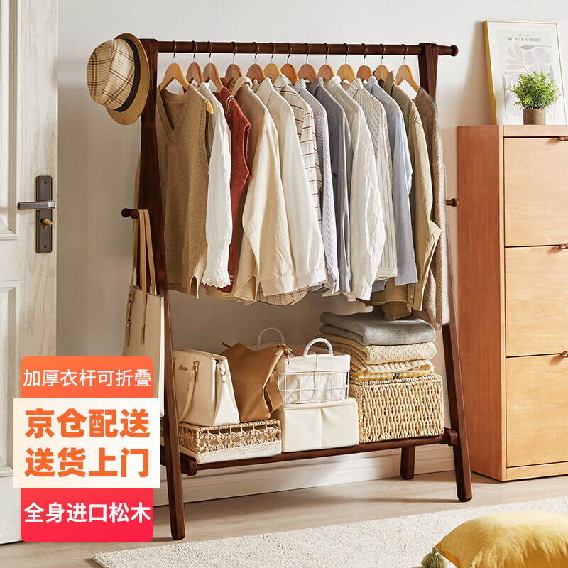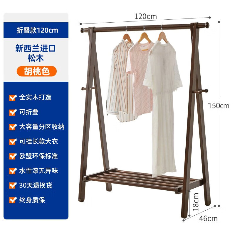 爱必居 衣架落地实木衣帽架卧室衣架家用挂衣架全实木胡桃色120cm价格:228.00元!