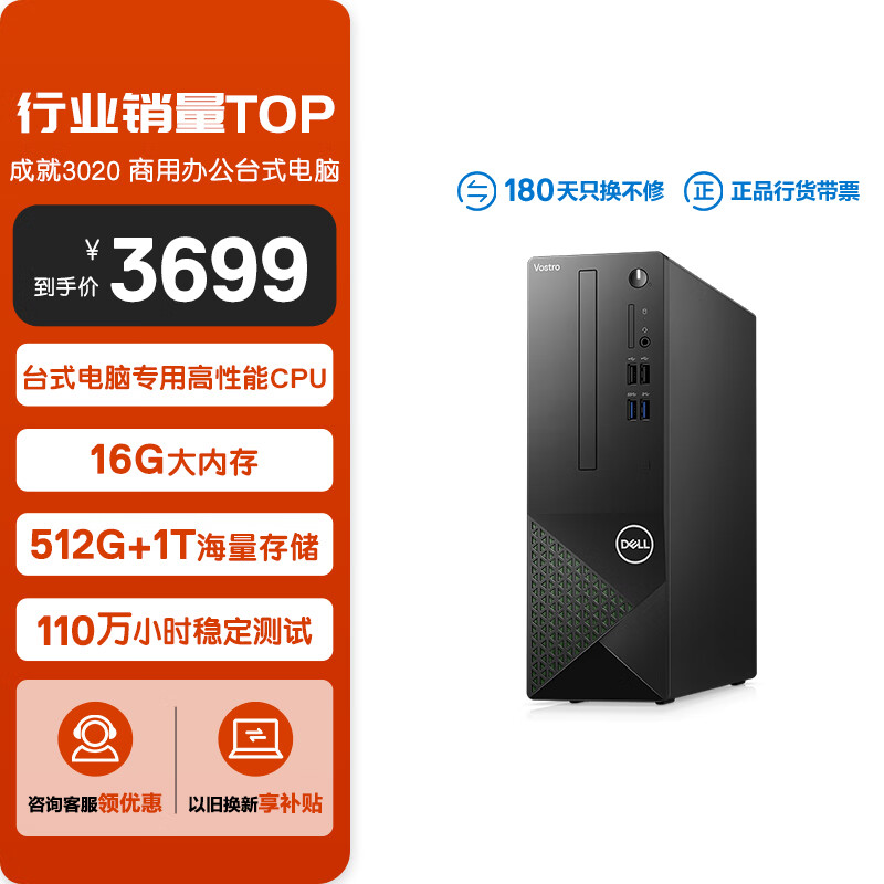 戴尔(DELL)成就3020 台式电脑主机(酷睿13代i5-13400 16G 512GSSD+1TB)单主机 高性能CPU价格:3699.00元!