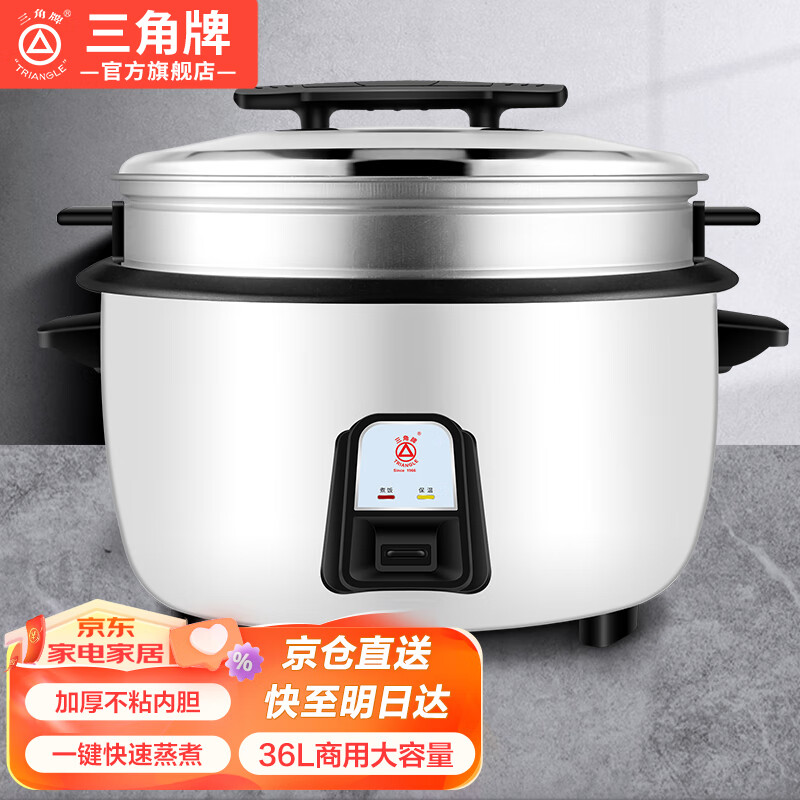 三角牌(Triangle) 商用大电饭煲食堂用大容量电饭锅酒店饭店适用8-30人以上带蒸笼8-36升 36L型加厚内胆+蒸笼【50-65人】价格:769.00元!