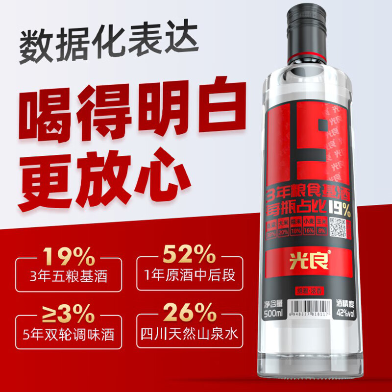 光良 数据瓶19 浓香型白酒 42度 500ml*6瓶 整箱装价格:202.00元!