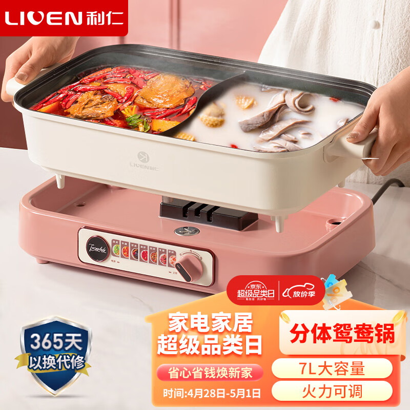 利仁(Liven)鸳鸯锅电火锅专用锅电煮锅电锅多功能锅多用途料理锅分体式家用电热锅火锅锅7升大容量 DHG-700BY价格:239.00元!