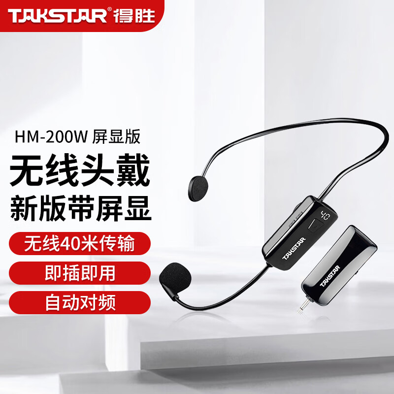 得胜(TAKSTAR)HM-200W 小蜜蜂无线UHF头戴麦克风屏显版 老师教学导游导购会议随身演出地摊叫卖耳麦价格:149.00元!
