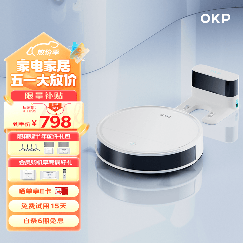 OKP扫地机器人 K5 Pro 扫拖一体 智能家用全自动擦地扫地拖地吸尘三合一体 自动回充电【续航升级版】价格:798.00元!