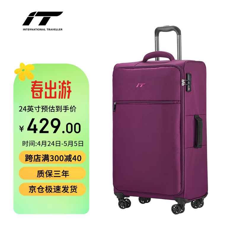 INTERNATIonAL TRAVELLER英国IT拉杆箱托运旅行箱万向轮超轻行李箱24英寸软布箱1191紫色价格:499.00元!