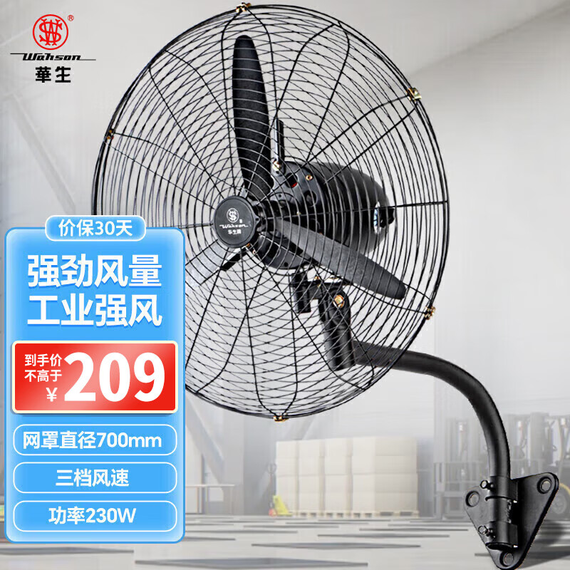 华生(Wahson)工业扇/电风扇/壁扇/大风量工厂车间商用风扇/牛角扇工业风扇 FL65-2(加强版)价格:219.00元!