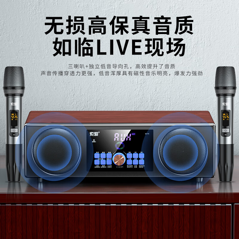 索爱(soaiy)SA-F5 家庭KTV音响套装全套蓝牙音箱功放卡拉ok一体机家用电视K歌唱歌 双话筒价格:699.00元!