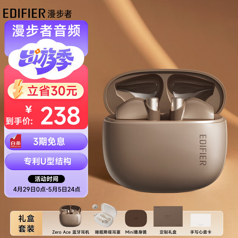 漫步者(EDIFIER)Zero Ace真无线蓝牙耳机+降噪睡眠耳塞礼盒套装 半入耳电竞游戏耳机 礼物礼盒 丹霞价格:238.00元!