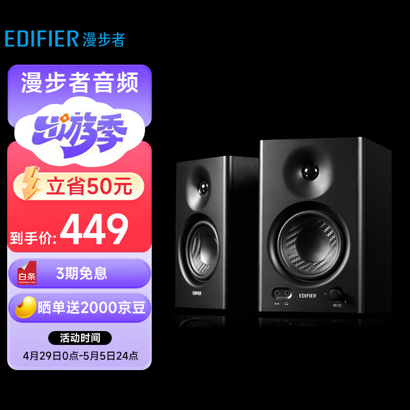 漫步者(EDIFIER)MR4 高保真有源监听2.0音箱 HIFI音质 多媒体电脑电视音响 桌面音响 黑色价格:418.90元!